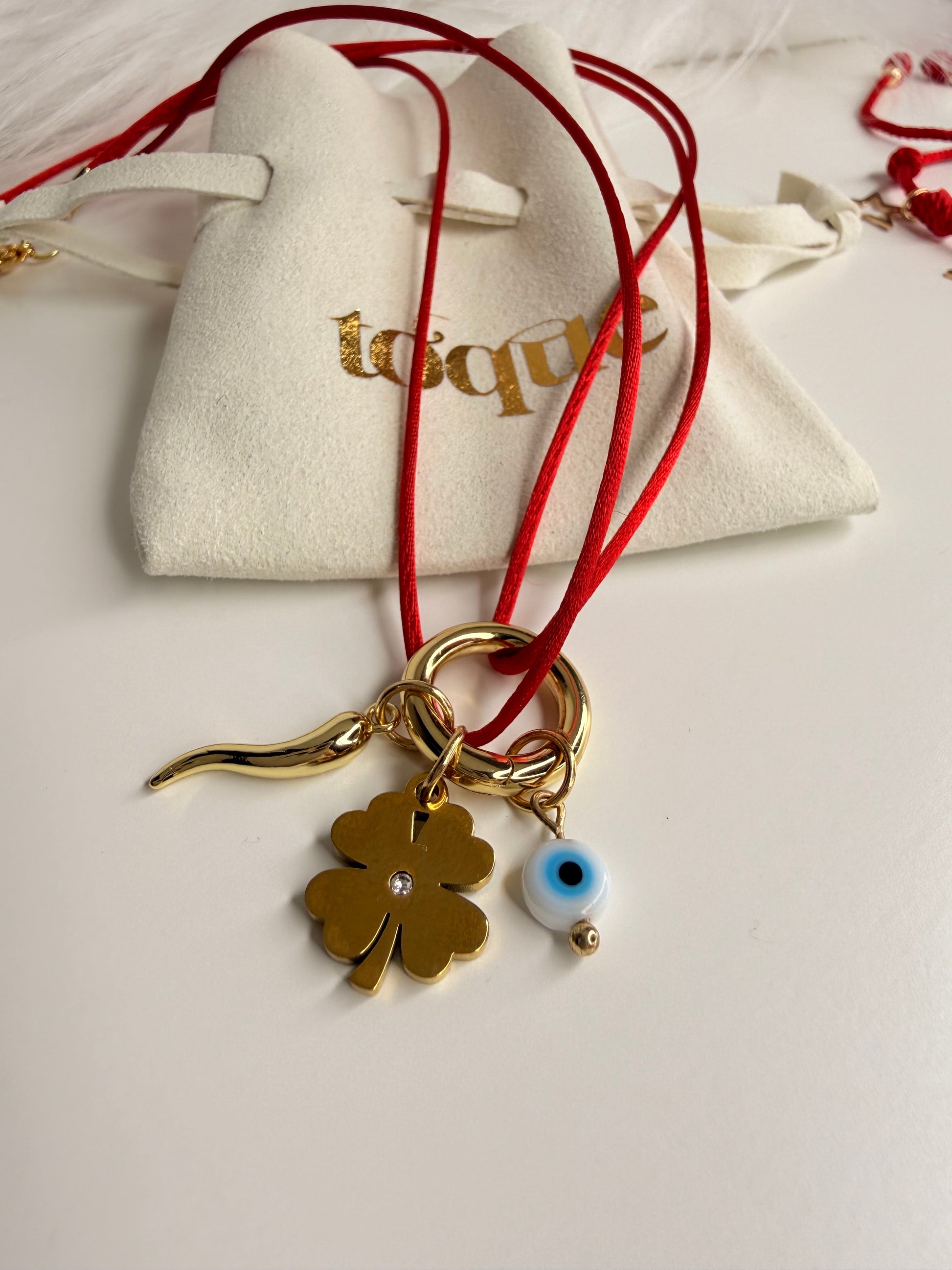 - Incluyen Charms en foto (Trébol, Chili & Evil Eye)